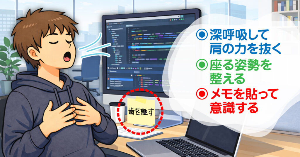 「歯を離す」と書いたメモを貼っておくと、